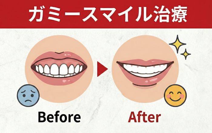 レーザーなどで余分な歯茎を少しだけ切除し、本来の歯の長さを出してあげることで、見た目のバランスを整えます