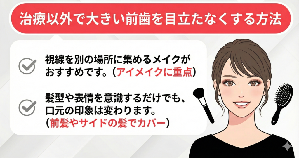 治療以外で大きい前歯を目立たなくする方法
